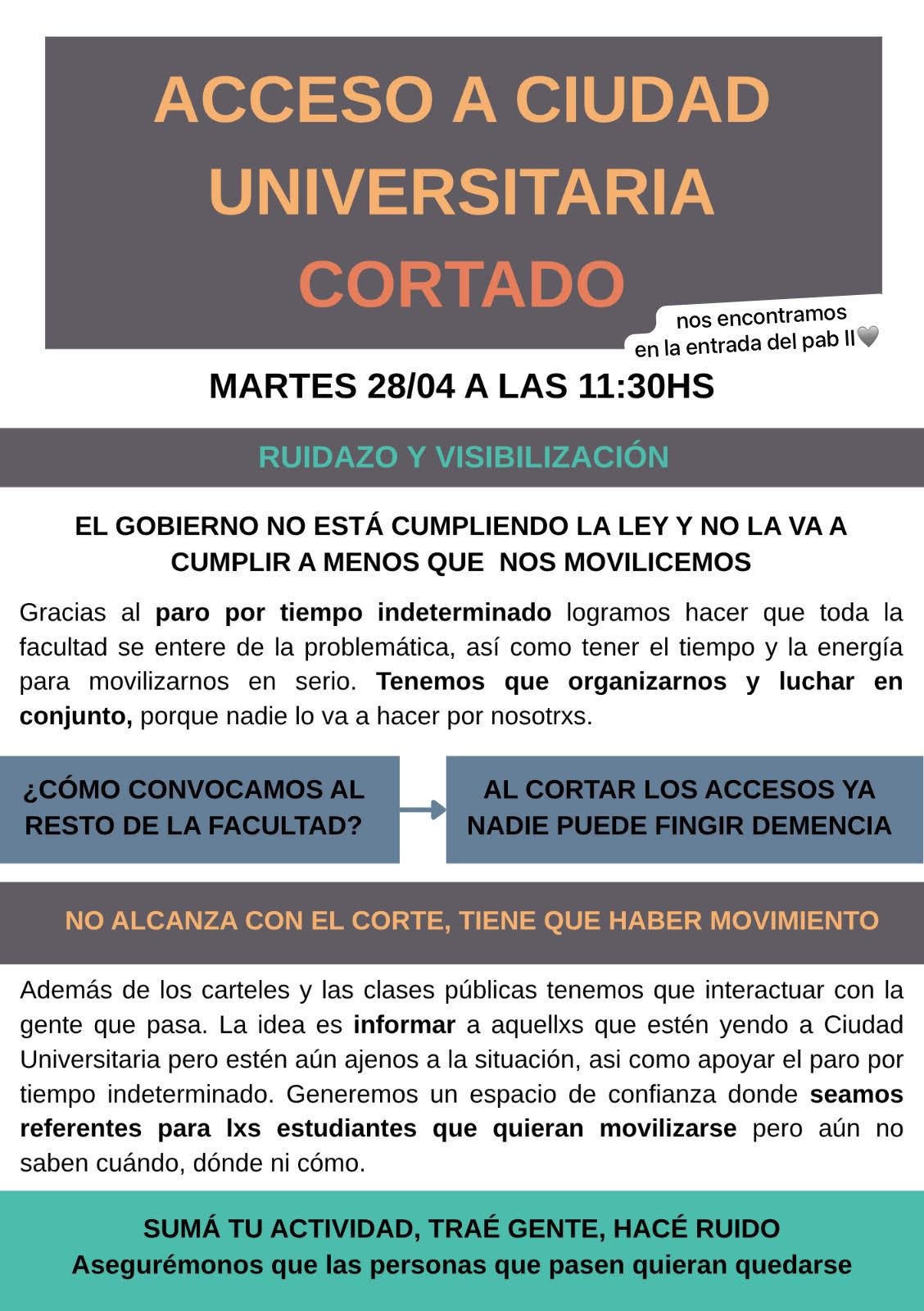 --> Tenemos que ser visibles ! te esperamos con carteles o lo que quieras para apoyar a nuestros docentes y defender la facu. Nos encontramos 1130 en la entrada del pab II y a las 12 vamos a la rotonda del parque de la memoria. Contale a tus amigos a tu profe, trae a tus compañeros! toda difusion y apoyo sirve y acompaña