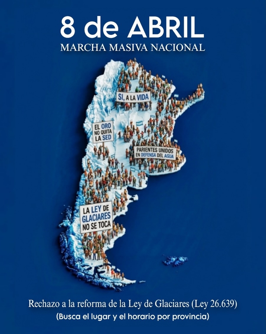 La movilizaci贸n tiene como objetivo rechazar el proyecto de reforma de la Ley de Glaciares (Ley 26.639)