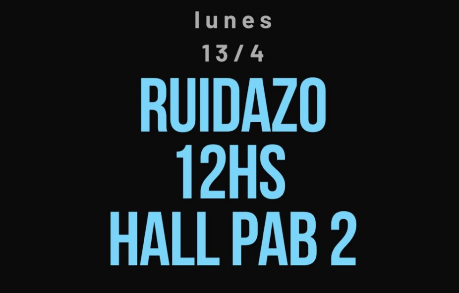 Por esto, proponemos que el Lunes 13 a las 12hs, antes de la asamblea docente, nos encontremos en el Playón del Pabellón 2 para hacer un ruidazo y cacerolazo en apoyo al paro docente, hacer una caravana hacia el subsuelo de FADU, el Playón de FADU, y luego volver a FCEN para la asamblea docente.